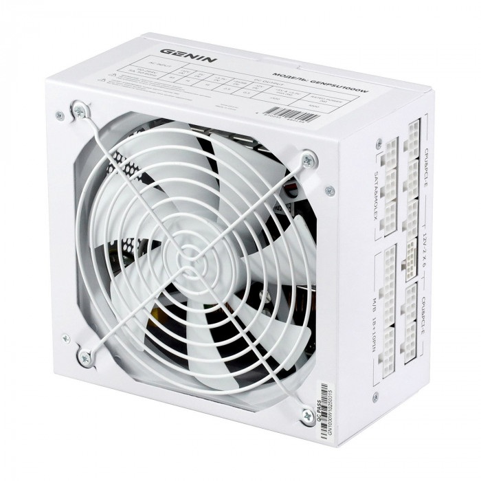 GENIN GENPSU1000W White — мощный блок питания мощностью 1000 W с 120 мм вентилятором и форм-фактором ATX 3.0. Размеры 150 × 160 × 86 мм, белый корпус, стабильная и надёжная подача энергии для игровых и профессиональных систем высокого уровня. Подходит для сборок с мощными видеокартами и многозадачными рабочими станциями.