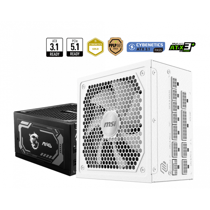 Блок питания MSI MAG A1000GL PCIE5 WHITE, 1000W, Active PFC, 80+ GOLD, Full Modular, ATX3.1, Белый