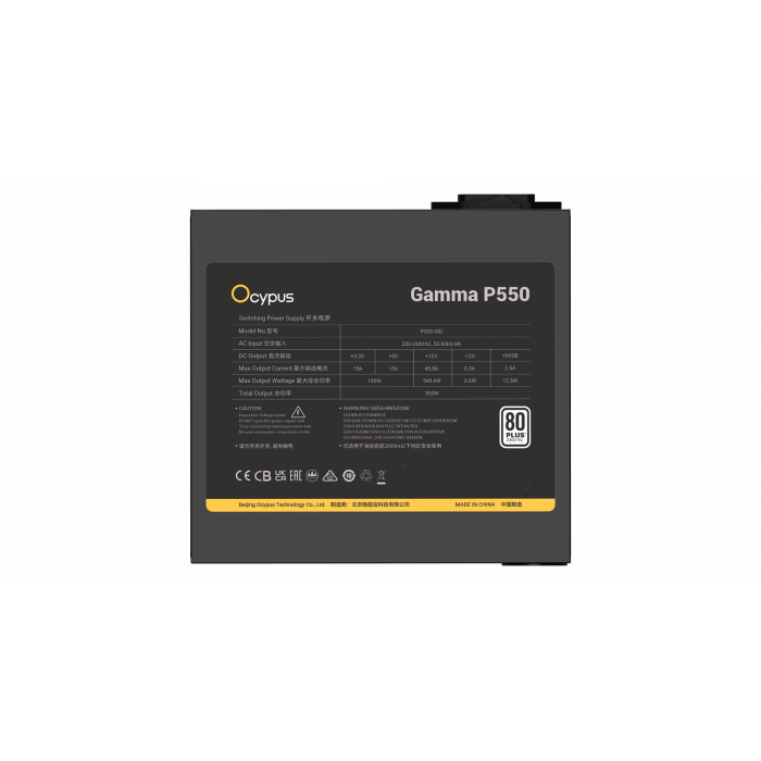 Блок питания Ocypus Gamma P550 Черный 550W Non modular, 80+ 230V EU WHITE, Gamma-P550-W1HDBK024X-EU