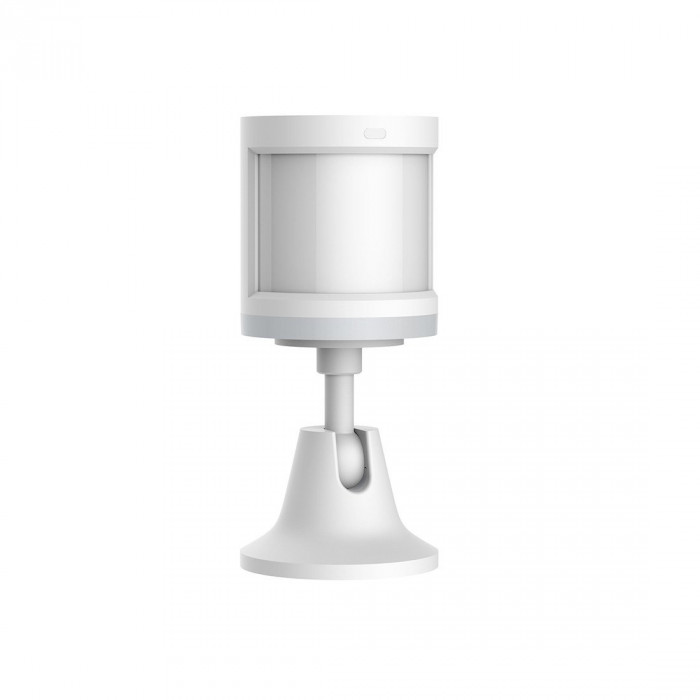 Датчик движения крепится на любую поверхность с помощью клейкого стикера из комплекта. Дальность обнаружения — 7 метров, угол обзора — 170 градусов. Оптимальное место для датчиков на шкафу или под потолком, откуда им будет доступна наиболее полная картина. Недостаток такого расположения — датчик будет реагировать и на животных. Чтобы сократить число ложных срабатываний, придётся пожертвовать полем зрения датчика и расположить его на высоте человеческого роста. Чтобы обеспечить покрытие всей комнаты при таком расположении, понадобится пара датчиков: например, на кухне один датчик будет следить за проходом, а другой — за столом.