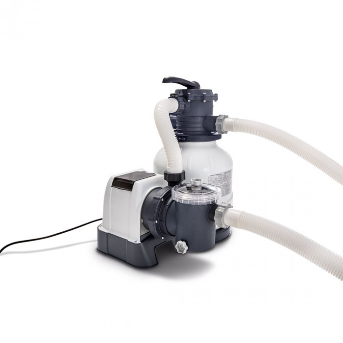 Фильтрующий песочный насос Krystal Clear для бассейнов, INTEX, 26646, Пластик, 7949 л/час., Встроенный таймер и манометр, Серый, Цветная коробка