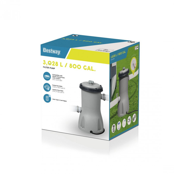 Фильтрующий насос Flowclear для бассейнов, BESTWAY, 58386, Пластик, 3028 л/час., Серый, Цветная коробка