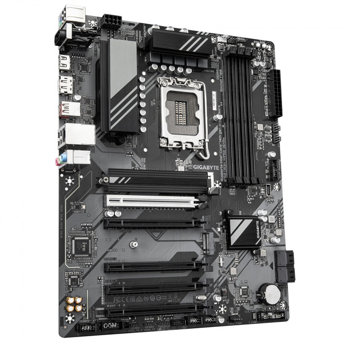 GIGABYTE B760 DS3H WF6E GEN5 — материнская плата формата ATX на чипсете Intel B760 с сокетом LGA1700. Поддерживает до 4 модулей DDR5, слот PCIe 5.0, два M.2 накопителя, видеовыходы HDMI и DisplayPort (DP), а также оснащена встроенным модулем Wi-Fi 6E. Подходит для сборки производительных домашних и игровых систем на базе процессоров Intel 12/13 поколения.