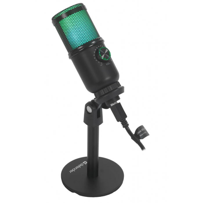 Defender Glow GMC 400 - игровой стрим микрофон с RGB подсветкой оптимален для стриминга, подкастов и онлайн игр. Совместим с любыми ПК и ноутбуками с USB-разъемом. Штатив в комплекте.