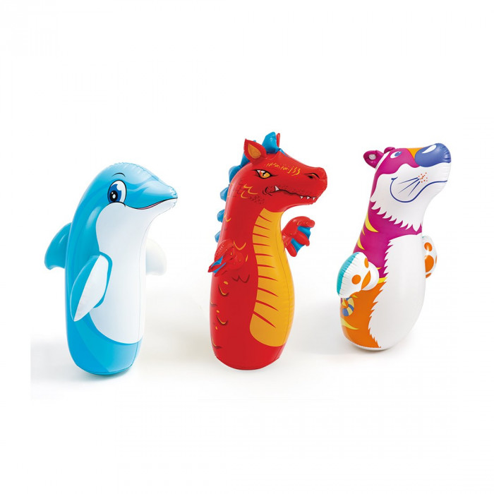 Надувные игрушки-неваляшки 44669 поставляются трех видов: Дельфин, Динозавр и Дракон.
