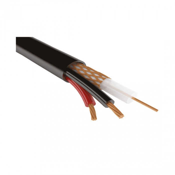 Уличный комбинированный кабель для прокладки линий систем видеонаблюдения на улице или в агрессивных средах. Кабель состоит из радиочастотного (коаксиального) кабеля и жил питания объединенных под единой оболочкой. Коаксиальный кабель состоит из центральной (многожильной) медной жилы, вспененного диэлектрика, экраном из медных жил и изоляции из ПВХ.