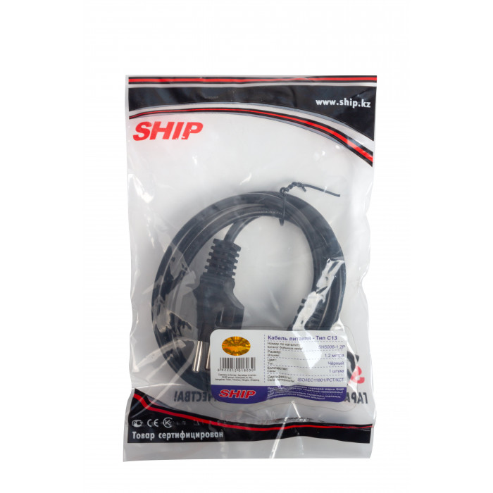 Кабель питания, SHIP, SH5005-1.2P, Тип: С13, for Case, Жилы из чистой меди толщиной 0.50 мм, пол.Пакет 1.2 м....