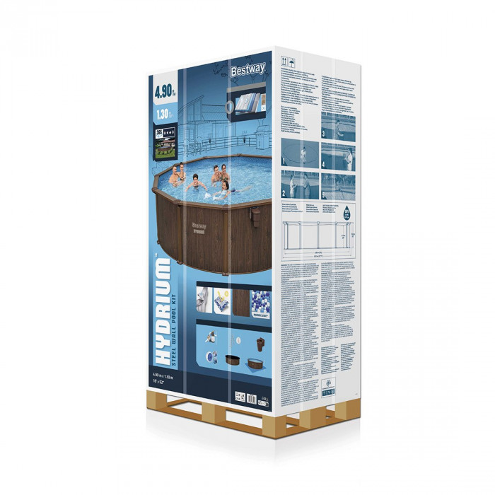 Каркасный бассейн Hydrium 490 х 130 см, BESTWAY, 561CU, Винил, 21490 л., Каркас из стального листа, Песочный ф-насос 58497 (5678л/ч), Интегрированный скиммер, Лестница 58332, Подложка, Тент 58039, Дозатор 58501, Ротанговый принт, Цветная коробка на паллете