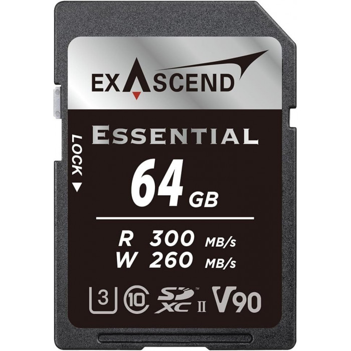Карта памяти Exascend Essential 64 GB SDXC II UHS‑II (V90) — высокоскоростная SD‑карта памяти формата SDXC с интерфейсом UHS‑II и классом скорости V90/U3/Class 10, обеспечивающая максимальную скорость чтения до ≈300 МБ/с... Читать далее...