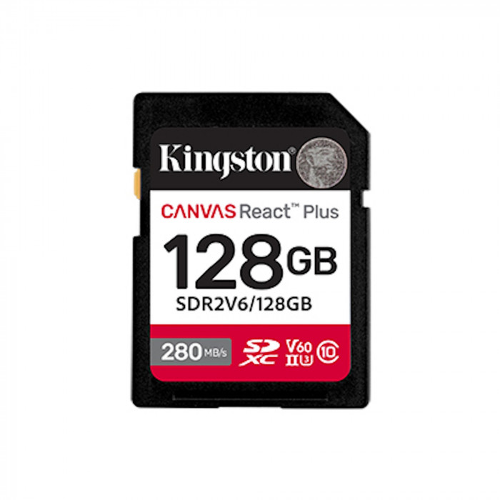 Карта памяти SD, Kingston Canvas React Plus, 128GB, SDR2V6/128GB, UHS-II, R280/W100, V60