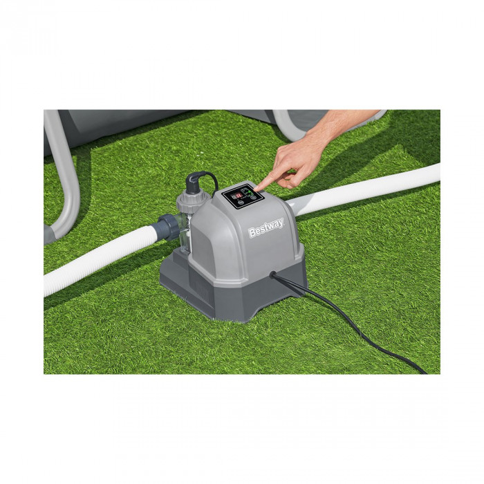 Боритесь с микробами в бассейне, но при этом бережно относитесь к своей коже с помощью хлоратора соленой воды Bestway® Hydrogenic™. Используя инновационную технологию, хлоратор соленой воды превращает соль в небольшое количество хлора, уничтожающего бактерии, чтобы ваш бассейн был кристально прозрачным и чистым, но при этом оказывающего щадящее воздействие на глаза, волосы, кожу и купальники. Еще одно преимущество? Без прямого добавления хлора в ваш бассейн вы будете наслаждаться практически без запаха традиционным бассейном с морской водой! Идеально подходит для бассейнов с объемом воды до 56 775 л (15 000 гал) с расходом фильтрующего насоса не менее 1249 л (330 гал); просто добавьте соль в воду, и система будет производить 12 граммов хлора в час для идеального соотношения соленой воды и хлора. Кроме того, в комплект хлоратора соленой воды входят 50 тестовых полосок «3 в 1» и 25 тестовых полосок для соленой воды, поэтому вы всегда можете измерить химический и солевой баланс воды в бассейне, чтобы поддерживать ее безопасность и чистоту.