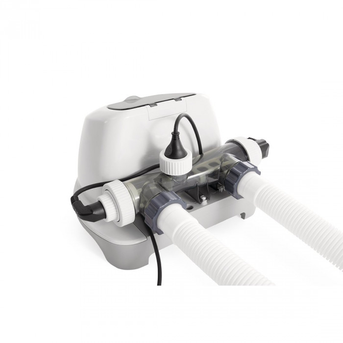 Хлоргенератор - это установка с уникальным двухэтапным методом дезинфекции воды в бассейне. Для его работы необходимой составляющей воды является соль – NaCl, также хлоргенератор работает только в паре с фильтр-насосом.