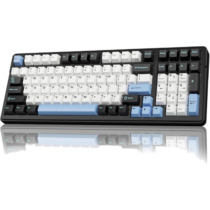 Клавиатура AULA F99, White+Blue+Black, mechanical, Star Vector switch, EN/RU/KZ, 2.4/BT/USB-C