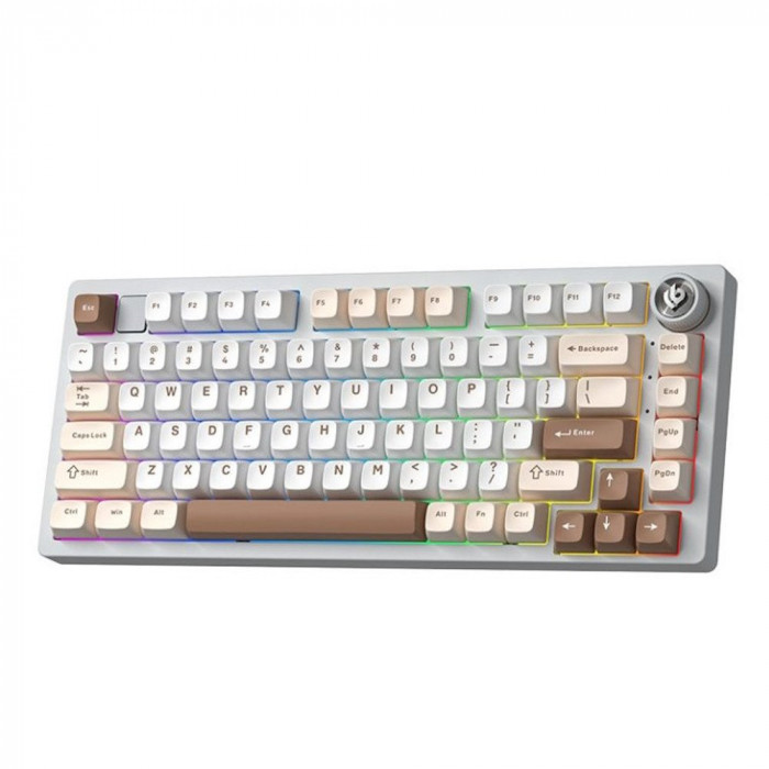 Клавиатура AULA Hi75C Pro, White+Brown, mechanical, Turquoise switch, EN/RU/KZ, 2.4/BT/USB-C