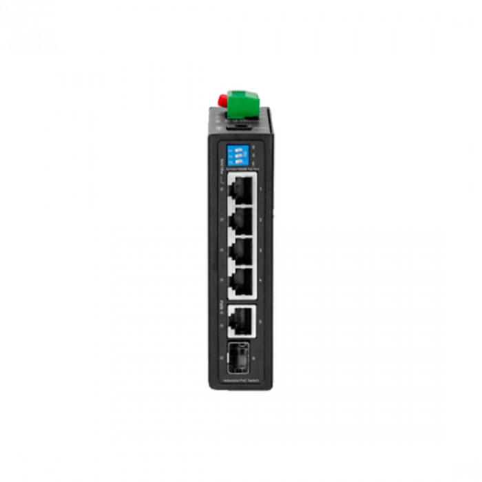 Коммутатор, BDCOM, IES200-LSTW1140, Неуправляемый, 5 портов 10/100/1000М RJ45, 1 порт SFP, DC 12-55В Dual RPS, -40+75°C, DIN-rail, без блока питания