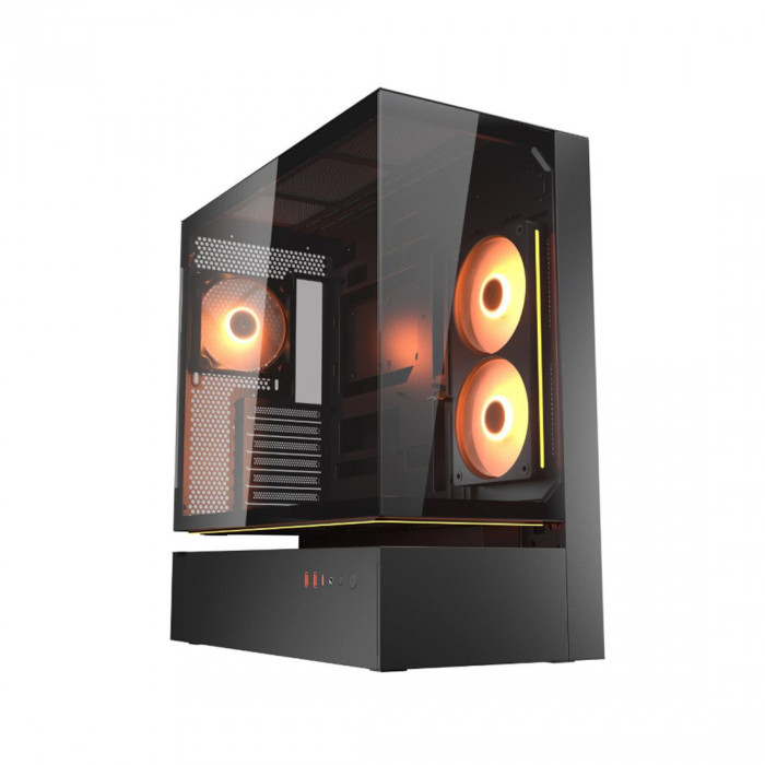 Стальная рама толщиной 1,5 мм усиливает шасси, сохраняя структурную целостность даже при использовании подвесной центральной вентиляции. В результате получается смелая, открытая архитектура, которая остаётся жёсткой, надёжной и готовой к высокопроизводительным сборкам.