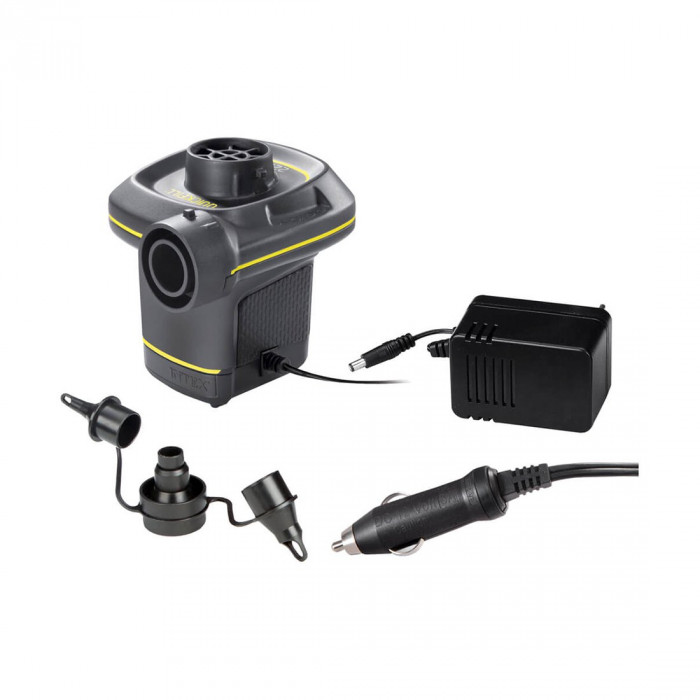 Насос электрический QuickFill AC/DC Electric Pump (220В/12В), INTEX, 66634, Пластик/металл, 480 л/мин, От электросети и автомобильного прикуривателя, Встроенная термозащита, 3 насадки, Чёрный, Цветная коробка