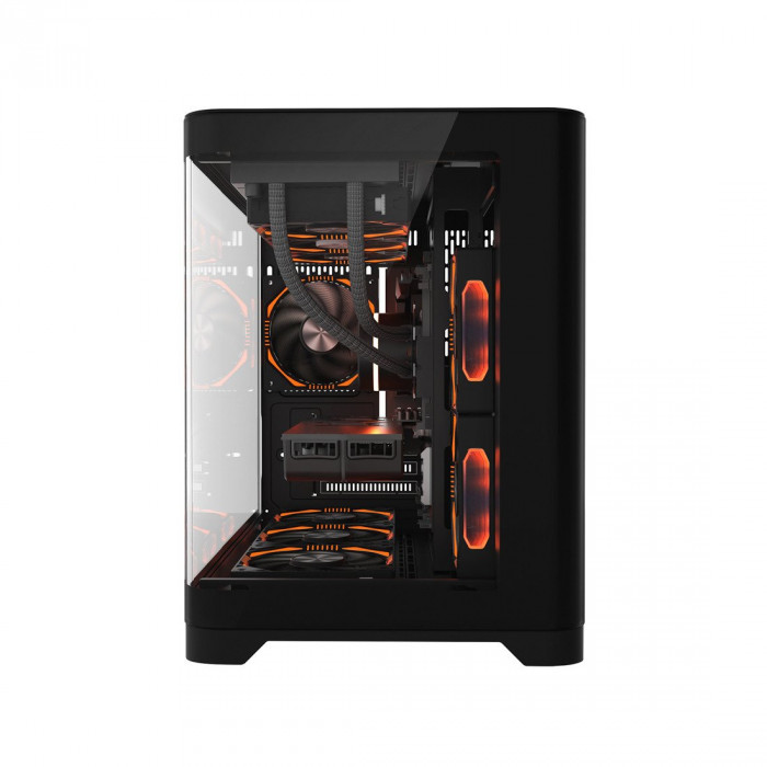 1STPLAYER UV6 поддерживает установку блока питания формата ATX, который размещается в нижней части корпуса. Это позволяет оптимизировать пространство и улучшить вентиляцию внутри системы. Также предусмотрены 4 горизонтальных слота расширения, которые подходят для установки карт расширения. В корпус можно установить до 9 вентиляторов, включая один тыловой вентилятор и три вентилятора в верхней и нижней частях корпуса. Поддерживается также установка радиаторов жидкостного охлаждения с максимальным размером 360 мм, что дает дополнительные возможности для улучшения теплового менеджмента.