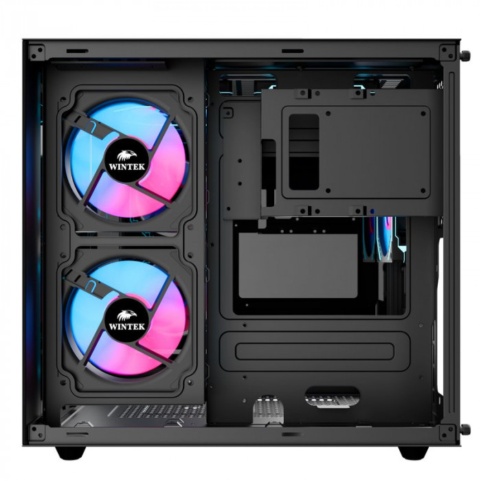 Корпус Wintek Aquarium H101-B TG, mATX, USB 1*3.0/1*2.0, 5*12cm ARGB PWM (контр. + пульт д/у), чёрный