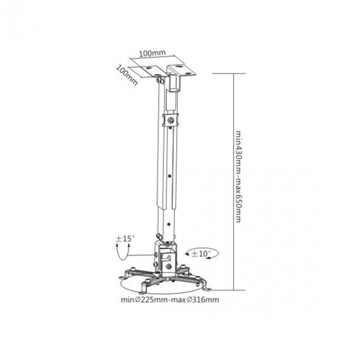 Кронштейн потолочный PRB-2 позволяет менять угол наклона вниз и вверхна +/- 15 градусов. Допустимая максимальная нагрузка 20 кг. Кронштейн изготовлен из высококачественного металла и имеет самый распространённый размер монтажных отверстий. Крепление адаптировано для простого и быстрого монтажа. В комплекте инструкция на казахском и русском языках.