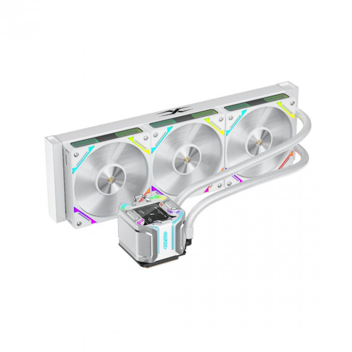 Кулер с водяным охлаждением 1STPLAYER X-360 1STPLAYER X-360 Black — производительная СЖО в строгом чёрном корпусе. Трёхсекционный радиатор и три высокоэффективных вентилятора обеспечивают быстрый теплоотвод при работе мощных процессоров. Благодаря оптимизированной конструкции помпы система остаётся стабильной и малошумной даже при высоких оборотах. ARGB-подсветка придаёт внешнему виду выразительность и поддерживает синхронизацию с современными системами управления светом.
