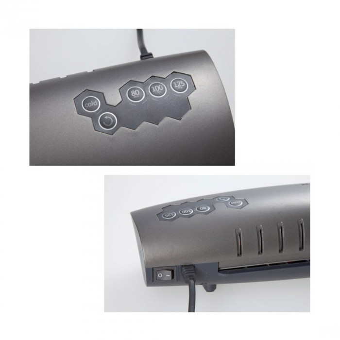 Ламинатор предназначен для работы с пленкой 80, 100 и 125 мкм. Максимальный формат документа – А4. Ламинатор прост в управлении и не требует дополнительных настроек. Синий световой сигнал подскажет о готовности к работе через 90 секунд после включения.