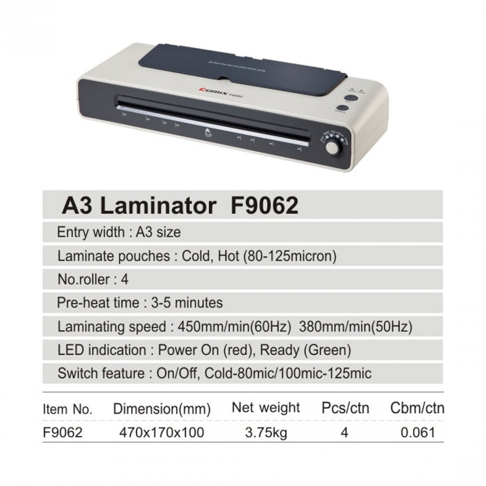 Comix F9062 – ламинатор начального уровня для дома офиса.