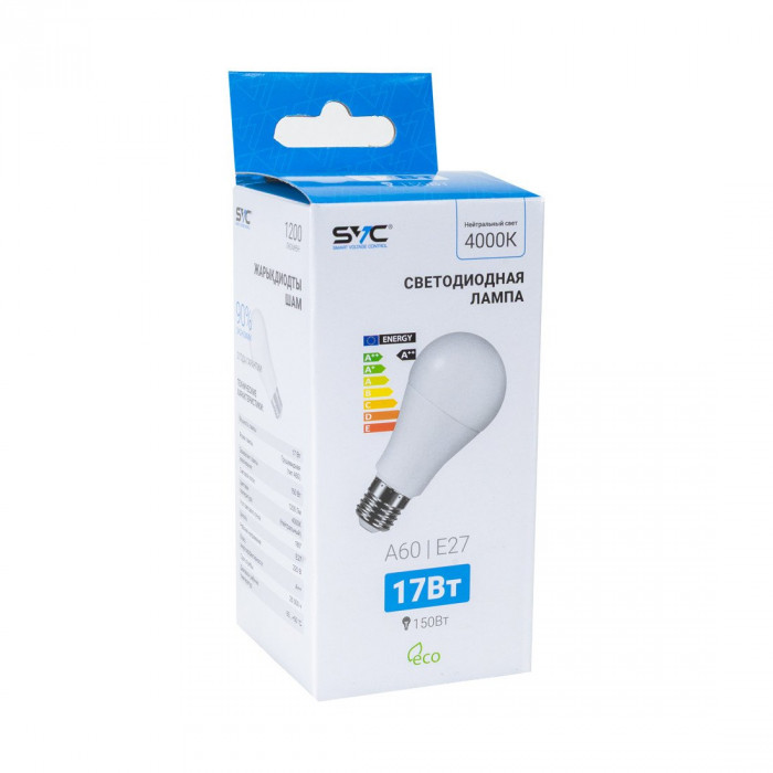 Лампа светодиодная SVC LED A60-17W-E27-4000K, Нейтральный