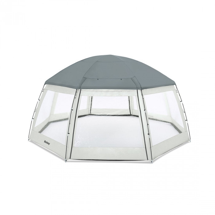Тент-палатка для бассейна Flowclear 600 х 600 х 295 см, BESTWAY, 58612, Винил, 2 входа, 8 больших прозрачных окон, Серая, Сумка для хранения и переноски
