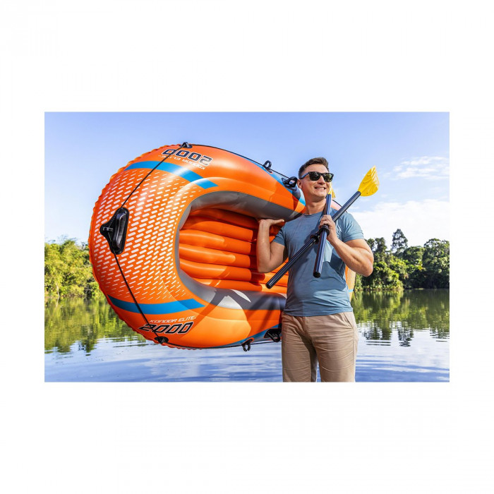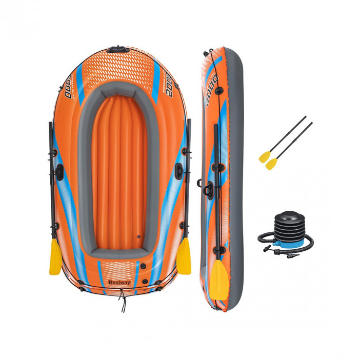 Лодка надувная Kondor Elite 2000 Set 196 х 106 см, BESTWAY, 61141, Винил, Трёхкамерная, Грузоподъемность 120 кг., Пара весел 124 см.(62015), Ножной насос 62147, Оранжевая, Цветная коробка