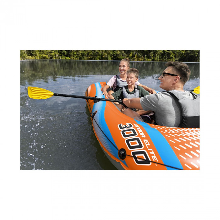 Bestway® Kondor Elite™ 3000 в комплекте поставляется со всем, что нужно вашей семье для незабываемого дня на воде! Идеально подходит для одного ребенка и двух взрослых (с общей грузоподъемностью 200 кг). В комплект входят надувной рафт хорошо видимого оранжевого цвета, 1 пара весел и ручной насос. Его легко надуть, чтобы вы могли тратить меньше времени на подготовку и больше времени проводить на воде. Рафт имеет конструкцию с двумя воздушными камерами в качестве дополнительного уровня защиты и удобный надувной пол с идеальной амортизацией для дополнительной релаксации и устойчивости. Ручка в передней части лодки обеспечивает удобную транспортировку по озеру или бассейну. Кроме того, в борта лодки встроены фиксаторы весел, которые помогают удерживать весла на месте, а леерный трос со встроенными люверсами по периметру позволяет пришвартовывать лодку или привязывать ее к другим лодкам. От гребли до рыбалки и просто плавания – рафт Kondor Elite 3000 обещает незабываемые летние дни, наполненные водой.