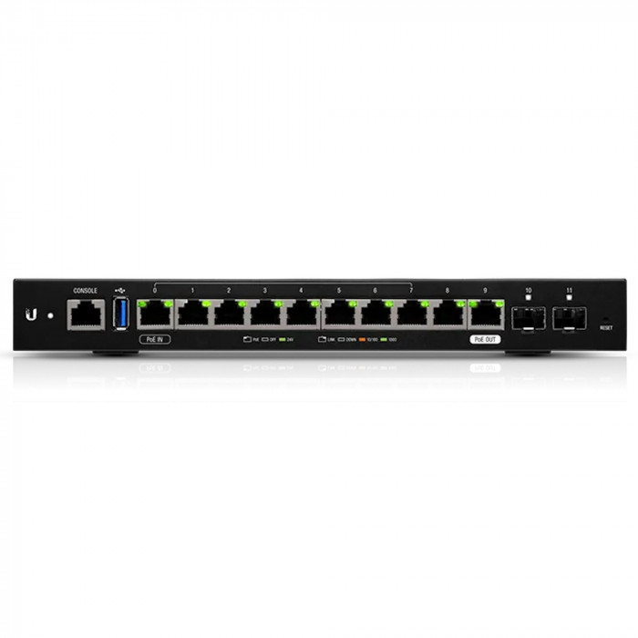 Маршрутизатор Ubiquiti EdgeRouter 12 — высокопроизводительное сетевое устройство для построения проводных сетей в офисах и корпоративных инфраструктурах с 10 гигабитными Ethernet‑портами с поддержкой Passive PoE и 2 опти...