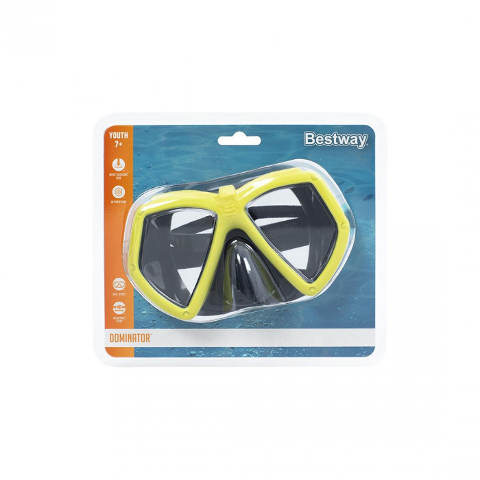 Лето брызг не за горами, и лучший аксессуар – маска Bestway® Dominator™! Эта маска отлично подходит для плавания в бассейне и ныряния в океане и предназначена для детей в возрасте от 7 лет и старше. Две ударопрочные линзы с УФ-защитой: Две прозрачные линзы этой маски изготовлены из поликарбонатного материала, который способен выдерживать ударные нагрузки, вызываемые прыжками, плесканием и играми в течение дня. Эти линзы также имеют защитное покрытие от ультрафиолетовых лучей, которое защитит глаза вашего ребенка, когда он будет проводить время на солнце. Удобная посадка: Маска Dominator имеет эластичный герметичный обтюратор, который плотно и удобно облегает лицо вашего ребенка, не позволяя воде просачиваться во время плавания. Полностью регулируемый ремешок может быть затянут или ослаблен для идеальной посадки. Эта маска изготовлена из не содержащих латекс материалов для дополнительной безопасности. Дети будут плавать, плескаться и улыбаться все лето в маске Bestway Dominator!
