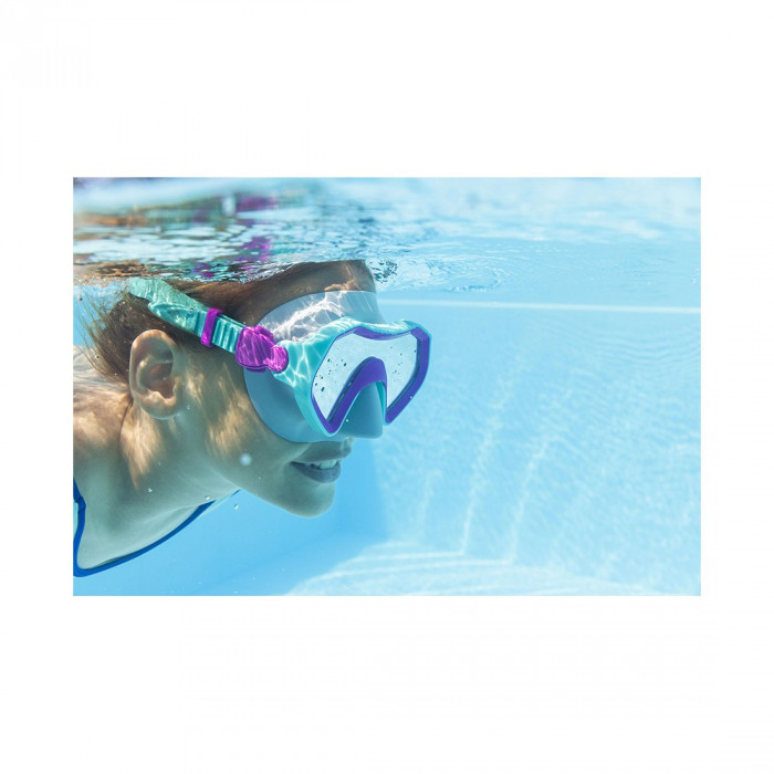 Дети будут готовы к приключениям с маской Bestway® Crusader™! Эта маска создана для игр и плескания в бассейне или плавания в океане и предназначена для детей в возрасте от 7 лет и старше. Цельная ударопрочная линза с УФ-защитой: Прозрачная линза Crusader изготовлена из прочного поликарбонатного материала, который способен выдерживать ударные воздействия вследствие прыжков, ныряний и плескания. Цельная линза обеспечивает более широкий обзор под водой во время плавания. Линза также имеет защитное покрытие от ультрафиолетовых лучей для защиты глаз во время игр на солнце. Удобная посадка: Маска Crusader имеет эластичный герметичный обтюратор, который плотно и удобно облегает лицо вашего ребенка, не позволяя воде просачиваться во время плавания. Полностью регулируемый ремешок может быть затянут или ослаблен для идеальной посадки. Эта маска изготовлена из не содержащих латекс материалов для дополнительной безопасности. Приготовьтесь к лету улыбок с маской Bestway Crusader!