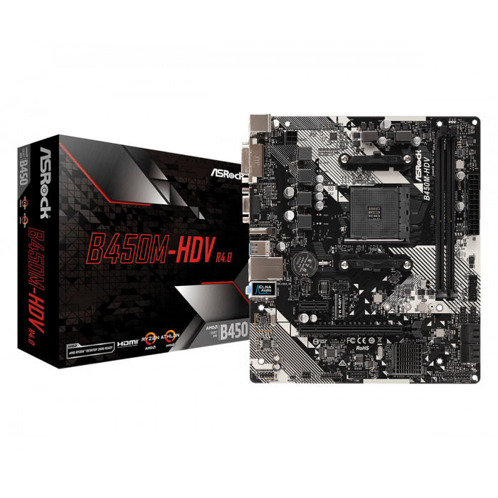 Материнская плата ASRock B450M-HDV R4.0 AM4 2xDDR4 4xSATA3 1xUM.2 HDMI DVI-D D-Sub mATX