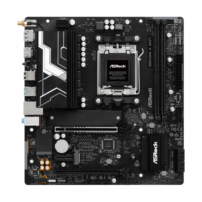 Материнская плата ASRock B850M-X WIFI R2.0 AM5 2xDDR5 4xSATA 2xM.2 Type-C HDMI DP WiFi6E mATX