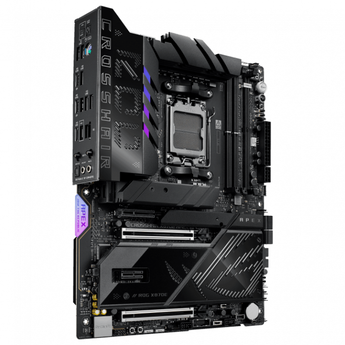 AI PC-ready ROG Crosshair X870E Apex создан для мировых рекордов по разгону благодаря обширным возможностям BIOS и экзотической системе охлаждения ROG-exclusive Memory Fan Kit. Помимо своих возможностей по разгону, он обеспечивает всестороннюю поддержку передовых видеокарт и накопителей, что делает его идеальной платформой для энтузиастов производительности AM5 AMD Ryzen™.