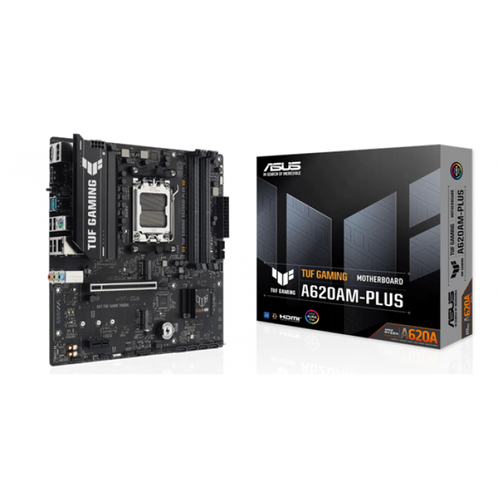 ASUS TUF GAMING A620AM-PLUS takes all the essential elements of the latest AMD Ryzen™ processors and combines them with game-ready features and proven durability. Engineered with military-grade components, an upgraded power solution and a comprehensive cooling system, this motherboard goes beyond expectations with rock-solid and stable performance for marathon gaming. TUF GAMING motherboards also undergo rigorous endurance testing to ensure that they can handle conditions where others may fail. This platform delivers the power and connectivity that advanced AI PC applications demand.