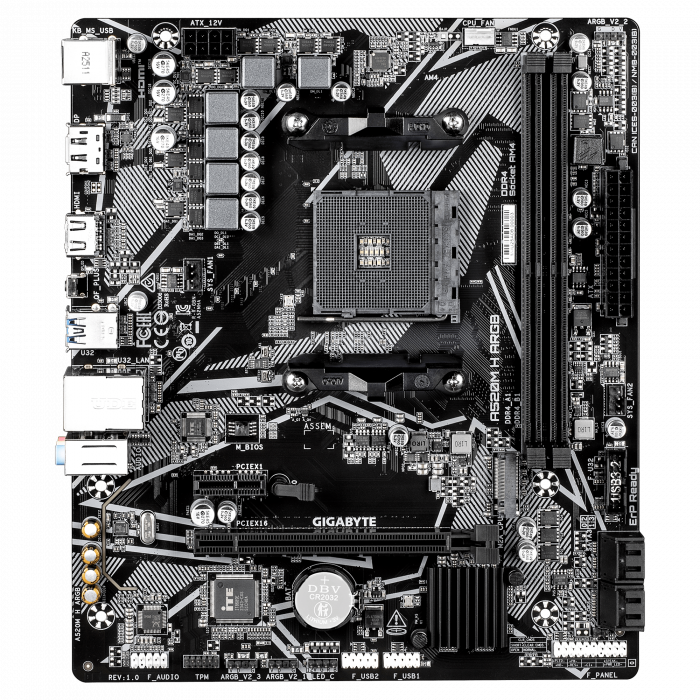 Материнская плата GIGABYTE A520M H ARGB, AM4, 2xDDR4, PCIe3.0, HDMI+DP, 4xSATA, 1xM.2, GLAN, mATX