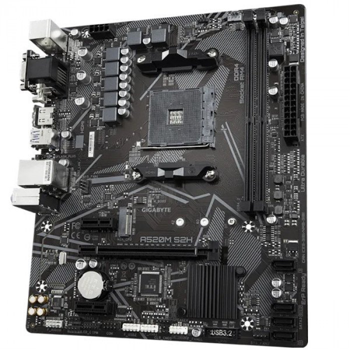 Материнская плата GIGABYTE A520M S2H, AM4, 2xDDR4, PCIe3.0, VGA+DVI+HDMI, 4xSATA, M.2, GLAN, mATX