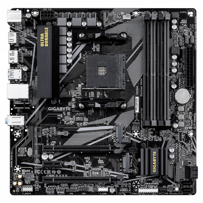 Материнская плата GIGABYTE B550M DS3H R2, AM4, 4xDDR4, PCIe4.0, DP+HDMI, 2xM.2, GLAN, mATX