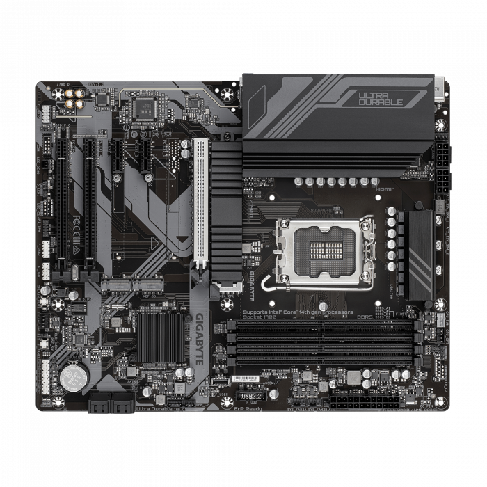 GIGABYTE Z790 D — полноразмерная материнская плата формата ATX с сокетом LGA1700 и чипсетом Intel Z790. Поддерживает память DDR5, интерфейс PCIe 5.0 x16, оснащена тремя слотами M.2 и современными видеовыходами HDMI и DisplayPort. Отличное решение для сборки производительного игрового или рабочего ПК.