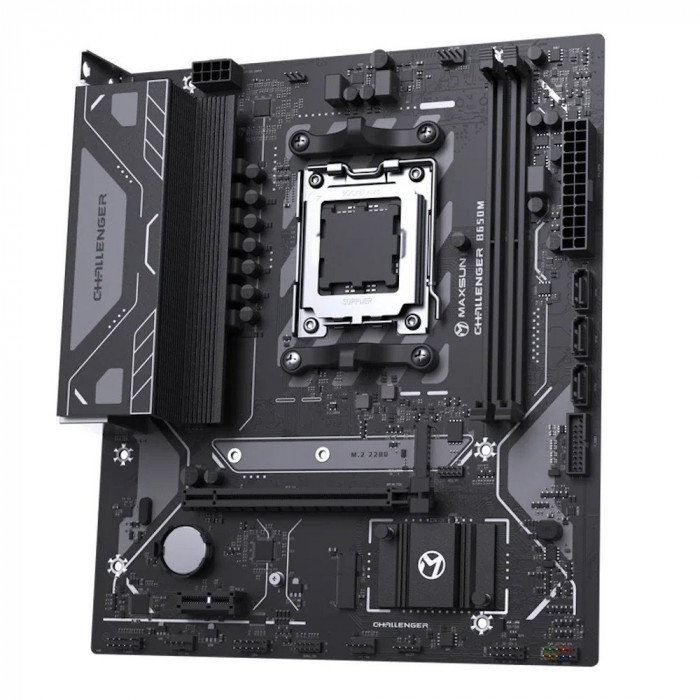 Материнская плата MaxSun Challenger B650M V2 — функциональная micro‑ATX плата на базе чипсета AMD B650 для процессоров с сокетом AM5, с поддержкой 2 × DDR5, PCIe4.0, видеовыходами HDMI и VGA, 4 SATA портами и 1 M.2 слото...