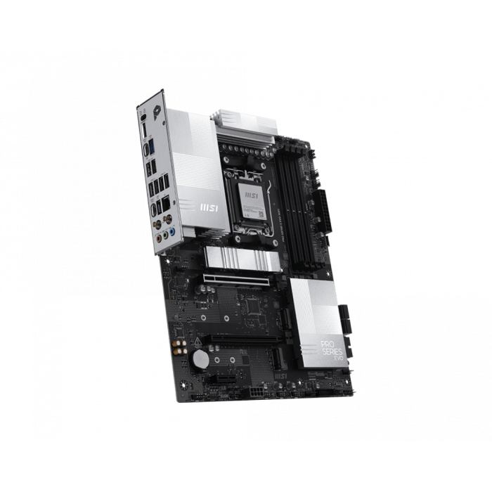PRO X870E-S EVO WIFI отличается простым дизайном и гармоничной серебристой цветовой гаммой, которая идеально сочетается как с белыми, так и с черными корпусами ПК. Она оснащена многими эксклюзивными функциями MSI, такими как Wi-Fi 7 с EZ Antenna, 5G LAN, PCIe 5.0 M.2 с EZ M.2 Shield Frozr II и дополнительным питанием PCIe, готовым для процессоров AMD Ryzen™ серии 9000.