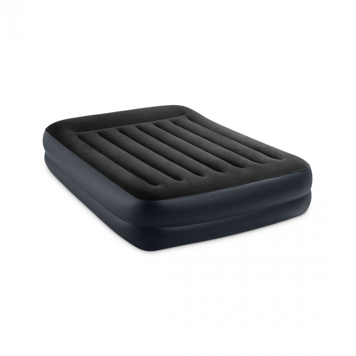 Матрас-кровать надувная Pillow Rest Raised (Queen) 203 х 152 х 42 см, INTEX, 64124ND, Винил, Встроенные эл. насос и подушка, Сумка для переноски и ххранения в комплекте, Черный, Цветная коробка