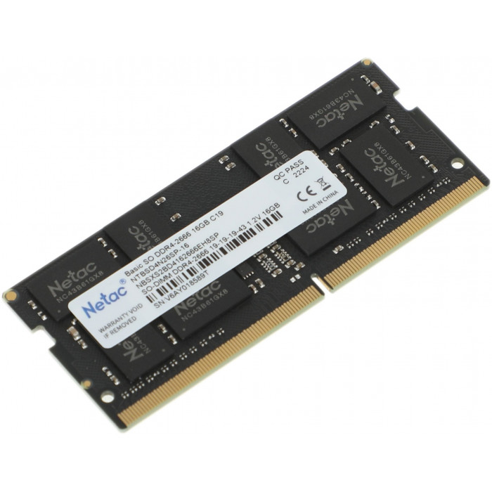 Модуль памяти для ноутбука Netac Basic, NTBSD4N26SP-16, DDR4 SO-DIMM, 16Gb, 2666Mhz, C19