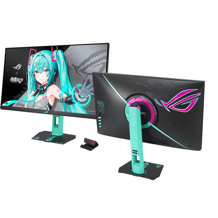 Компания ROG продолжает сотрудничество с виртуальной поп-звездой Хацунэ Мику, представляя полноценную игровую систему, выполненную в научно-фантастическом стиле ROG и сине-зелено-розовой цветовой гамме Мику. Коллекция сочетает в себе фирменный стиль Хацунэ Мику с превосходной производительностью ROG, высоким качеством и универсальной функциональностью для соревновательных игр или повседневных задач.