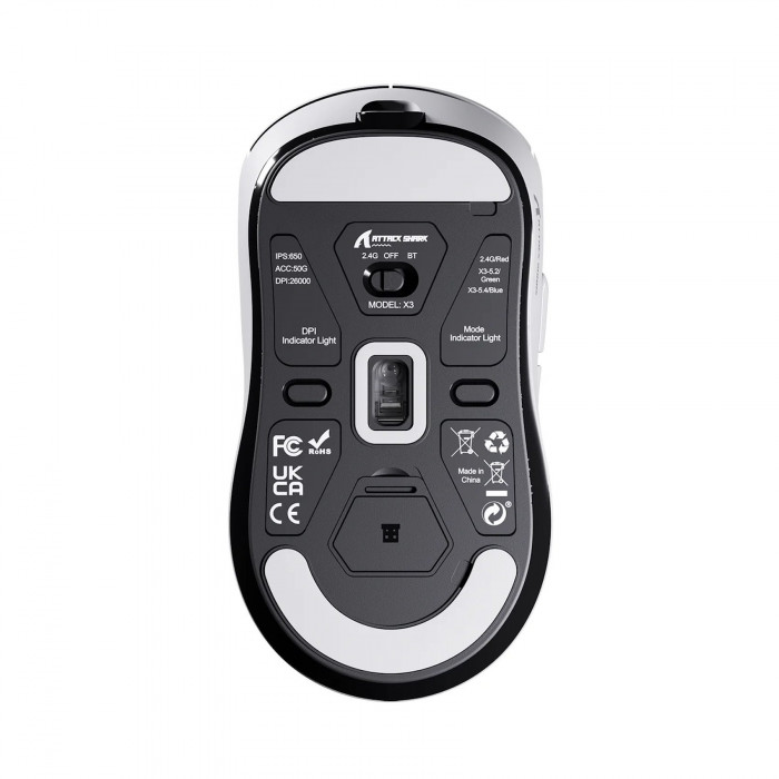 Мышь Attack Shark X3 Black, PAW3395, 26000 DPI, 2.4/BT/USB-C, 80 Million Clicks, 300mAh, 49±3g