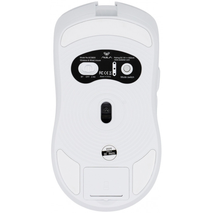 Мышь AULA SC580X, PAW3325-10000dpi, 1000Hz, 500mAh, 2.4/BT/cable, 6 buttons, Lightweight(84g), White