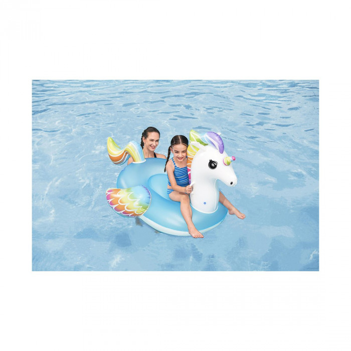 Надувная игрушка для катания верхом Единорог (Fantasy Unicorn) 155 х 119 см, BESTWAY, 41114, Винил, Голубой, С ручками, Цветная коробка